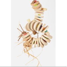 Jucărie cu multe elemente de ciugulit și ronțăit, pentru papagali de orice talie, cu densități de la foarte moale până la esență medie. Materiale: fibră de lemn, elemente din tulpină de porumb, lemn de esență moale, sfoară din fibră de cocos, sârmă inox, lanț inox. Înălțime totală (întinsă): 50 cm...